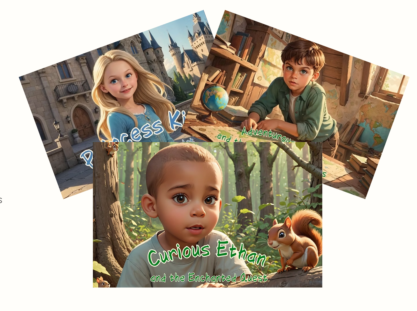 While your child's story is still waiting to be written, we invite you to peek behind the curtain. Step into our gallery to explore real books we've crafted, each one unique to the child who inspired it. See how we transform photos into illustrations and bring personal passions to life through storytelling.
